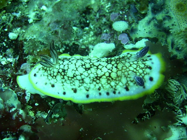 ■ポイント名:音無瀬 ■アクセス:ボート ■深度:平均15m/最大25m ■水温:17℃ いやー、今日はまともなボートダイビングでした。ちょっと曇り気味やったけど、凪で最高な1日じゃったーぞー! 透明度は、20M位あったかな?でも、ちょっと春濁り気味。 やっぱ、ボートは良いねー。音無瀬、最高だね。!見て!セトリュウグウウミウシ、きれかねー。なんか、化粧ばしてるみたいでした。