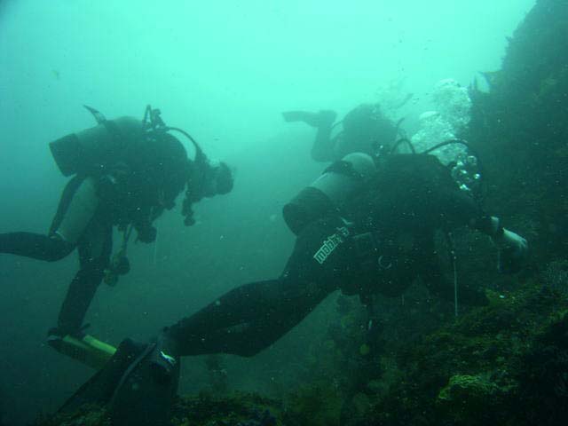 ■ポイント名:猪ノ浦 ■アクセス:ボート ■深度:平均8m/最大12m ■水温:17℃ 久々のボートダイビングと言うか今年初ボートでした。が、最悪の天気でした。せっかく、わんだーらんどの皆さんが来てくれたのに大嵐状態、結局1本しか、潜れませんでした。それも、普段は潜らないような入り江の猪ノ浦。 わんだーらんどの皆さん、これにこりずに、また来てくださいね。まってるよー!!