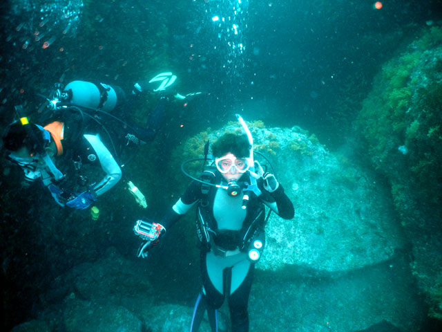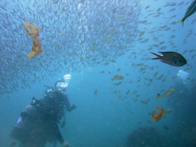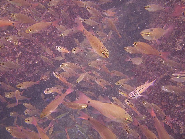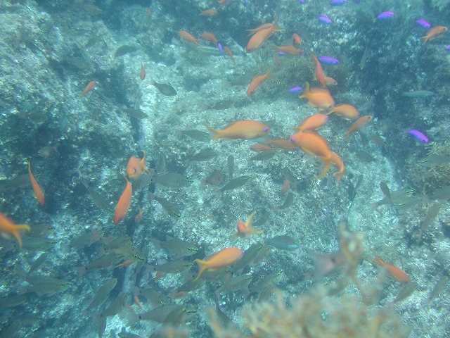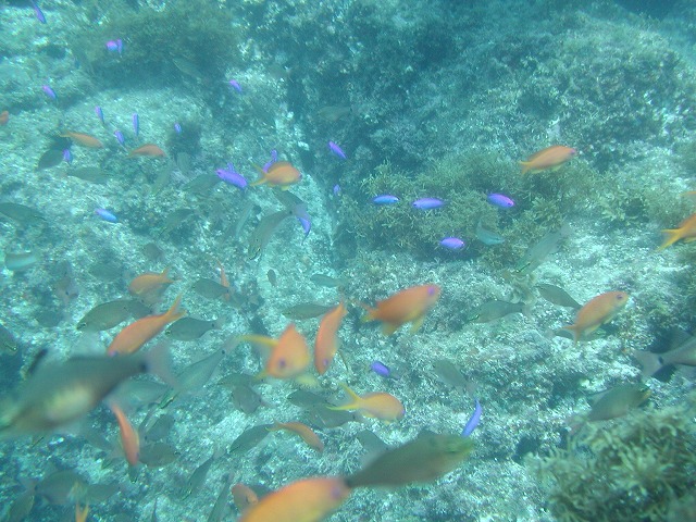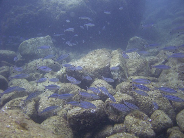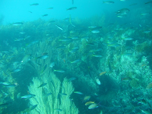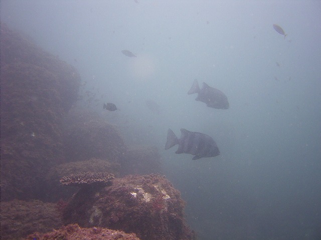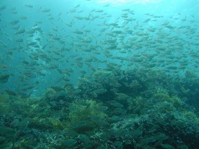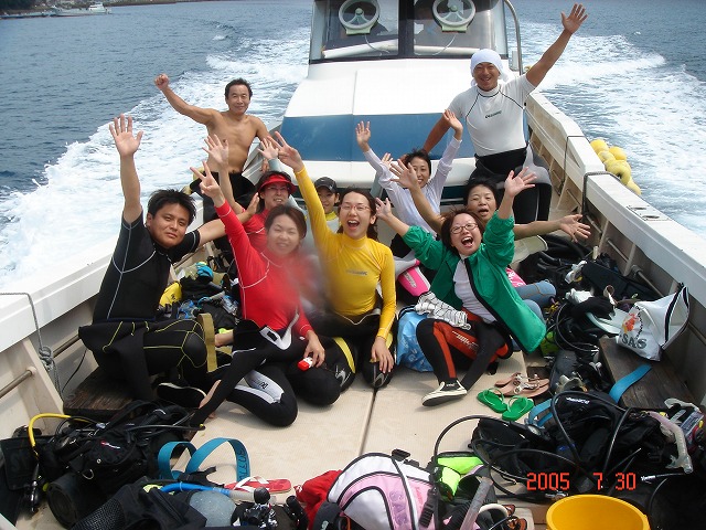 岩永ご夫婦、体験ダイビングお疲れ様でした。そして、講習中の早田さん、はたまたファンダイビングのまりっぺ・ゆうこちゃん・英子さん、真夏のような天気の中で気持ち良いゆったりダイビングで見も心もリラックス出来ましたね。とくに2本目は、湾を抜けてテトラポットの物凄い魚影にはびっくりしましたね。