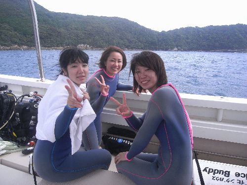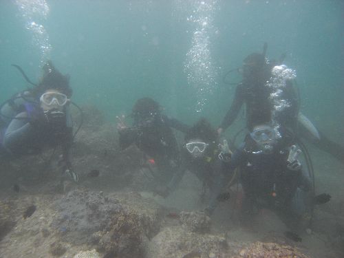 午前中の賑やかな皆さんがお帰りの後は、荒木さんとお友達の体験ダイビングにブルーツリーに出かけました。 生憎のウネリでA木さんは少々よってしまいましたが、沢山の魚達に囲まれて水中を満喫してきました。