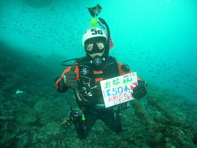 nicebuddy が 2011/01/05(水) - 09:28 に投稿 画像 今日は、ディープのSPでポンを潜りました\(^O^)/ なんと、1ダイブ目は50本記念ダイブということでしたので、記念撮影をしてきました ダイビング終了後に、(潜ってはいないなっつんも参加して)50本記念のケーキを3人でいただきました(食べすぎちゃいました) ・・・I谷さんおめでとうございました\(^O^)/ ポイント 五島
