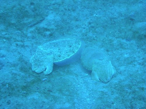 寒かったので、今日はファンダイビングのゲストの方がいらっしゃいませんでした・・・こたつでカタツムリになろうと思っていたら・・・てっちゃんがガイドしてやっか こんな事はめったに(いや次何時有るかわからん)と思って、速攻で準備して潜りました・・・潜るまではさむか~・さむか~とぶつぶつ言っていましたが・・・水中に入ると歓声を上げまくりで、興奮しちゃいました お恥ずかしながら、ツノザヤに今シーズン初の対面で『おかえりなさい』の挨拶をしたり、コウイカのカップルのデートにお邪魔したり、大きなツバクロエイ(写真を撮る前に、てっちゃんが逃がしちゃいました)を見つけたり、何と言っても本日の最高はカマス&アジの巨大トルネード『わ』 『すげ』 \(~0~)/ 興奮しまくりでした どんなに寒くても、絶対にみんなと一緒に見たか~ と思って帰ってきました 寒さを忘れたダイビングでした。 ダイビングの後は、講習後のやっチャン達を待って一緒にあったか~いぜんざいを食べました。