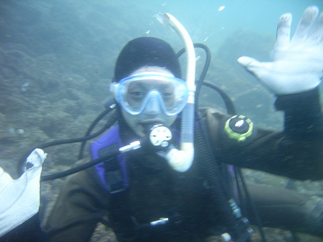浅いところでの海洋講習では、体のバランスとマスククリアに戸惑いましたが、