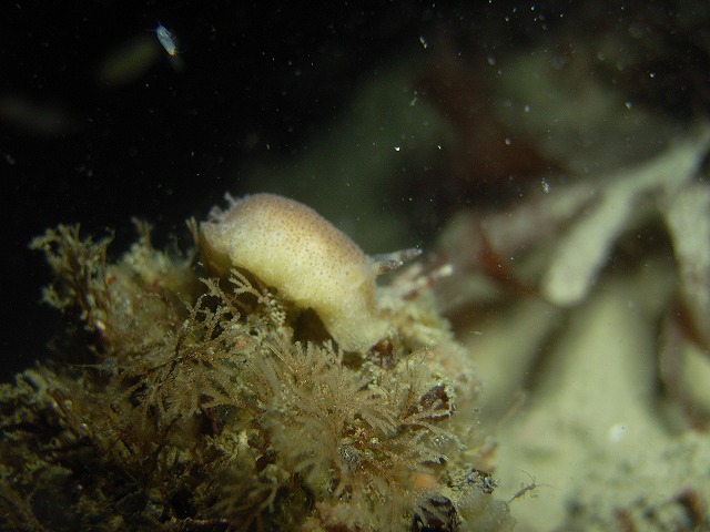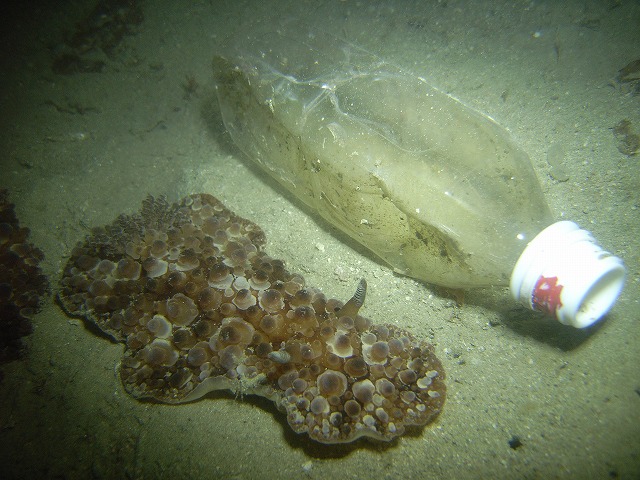 ロープ沿いに砂地を移動中に本当に可愛くないマンリョウウミウシが二個体