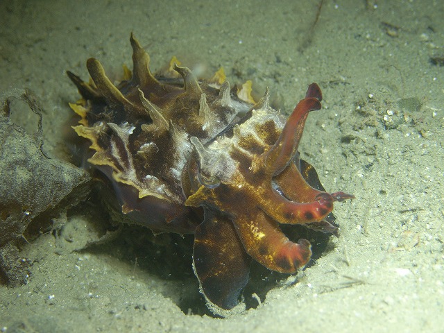 見つけた時は白っぽく砂に擬態してましたが、興奮して変色