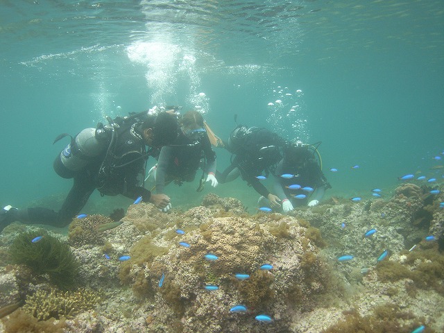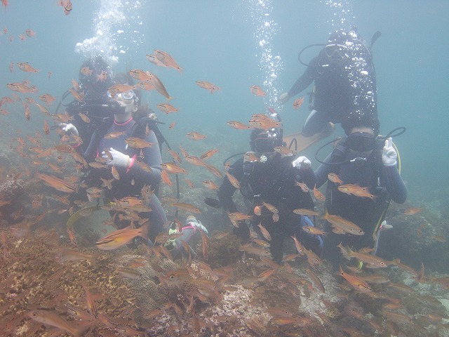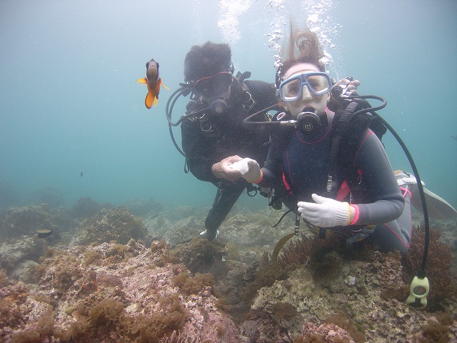 透明度15以上(やったー) 海の状況も\(^O^)/ 水中に入るまで緊張していた2人でしたが、水中ではリラックスして沢山の魚に囲まれたり、ウミウシを観察したりと~っても楽しい時間でした。 2人とも、これからOW講習に入る予定です。 楽しいダイビングライフが出来る様に頑張りますのでこれからも宜しくです.