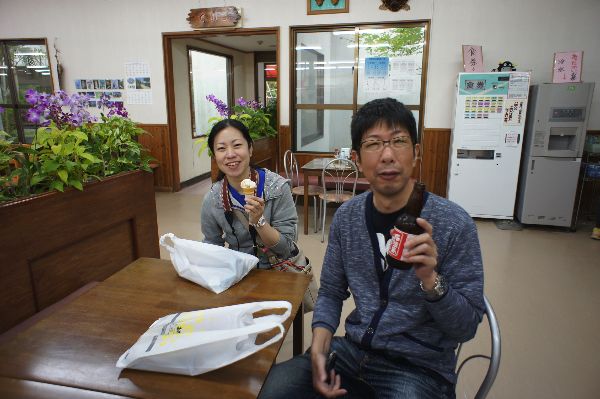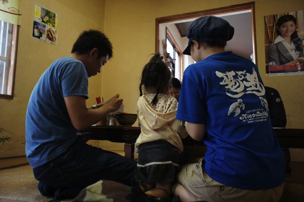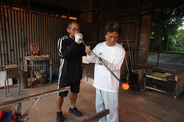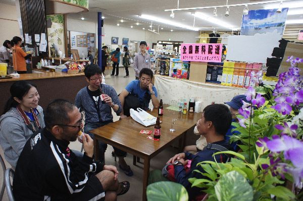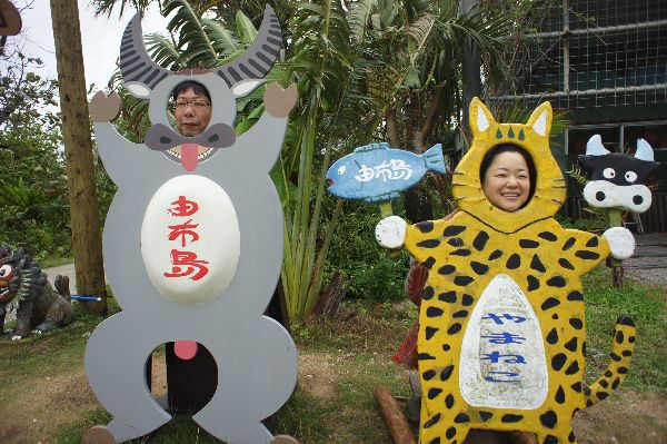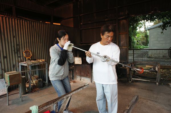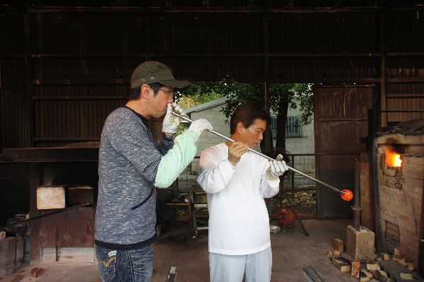 ) 可愛い我が子や妻にお土産を探す人 大好きなアイスクリームを食べる人 ・・・牛と会話をする人もいました(モーゼは何でも出来るんですね 笑) 観光のあとは、西表島最後のお食事(ソーキソバと・・・やっぱり笑) お食事の後は、3日間思いっきり楽しませてくれた西表島と、ブルーシーズンの湊さんにお別れをして、石垣島で記念の琉球グラスを制作に行きました・・・こばちゃんは飛行機の時間が来たのでここでお別れ(^-^)/~~~ こばちゃんのグラスはあねご奥様が付きで作りました