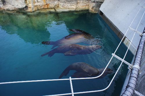 到着後は、まずセイウチのショーをみんなで見学に行きました その横では、まるで私たちの様3匹が水面でドロ~ン