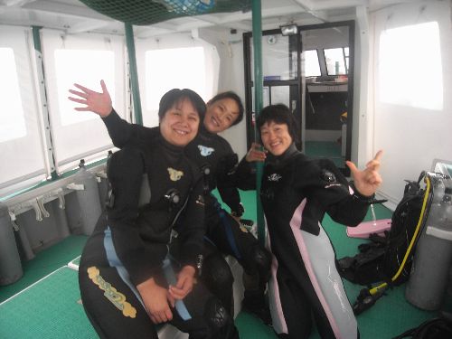 天気には、残念ながらあまり恵まれていませんでしたが、ダイビングもしっかり5ダイブ、透明度20~30mとクリアーな世界でサンゴやカラフルな魚達にしっかり癒されてきました 水中では、イソマグロやナポレオンなどの大型の魚達にも出会えましたが、カワイイ小さな生き物達 ジョーフィシュやトウアカクマノミ・ガラスハゼやウミウシ達・・・そして、何よりは今回シーズン終わりの頃で3人でスタッフ3名、ボートを貸し切りでした。マンツーマンで潜らせて頂きました。 贅沢にとっても充実したツアーでした。
