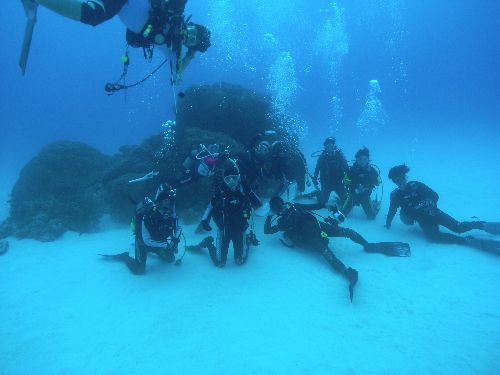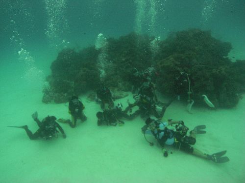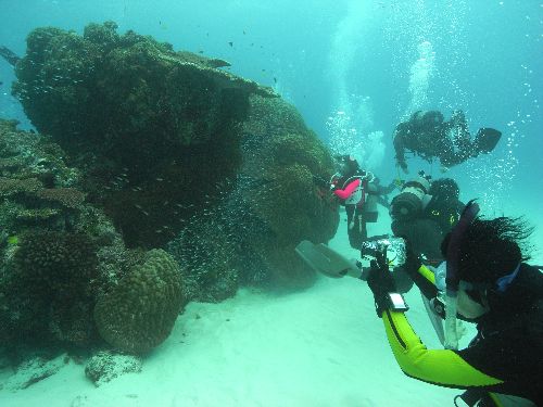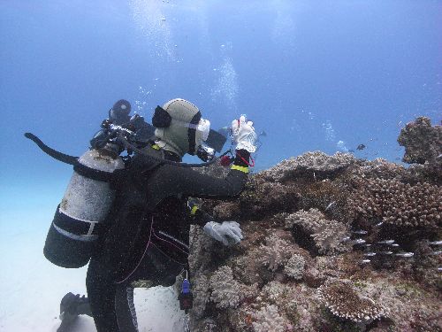このポイント、いやー何と奇麗な事。水深10mの真っ白い砂地にサンゴの根が点在していて、その根にはスカシテンジクダイやキンメモドキが太陽の光に当たってキラキラと輝きとっても奇麗でした。癒された~