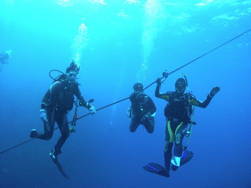 一本目のポイントは、なかなか潜れないと言う、本ドロップ。エントリーして下を見ると、ズドーンとドロップオフのダイナミック地形が目の前に・・・透明度が良かったので、深っそうな海底が見えていました(ヘ。ヘ)