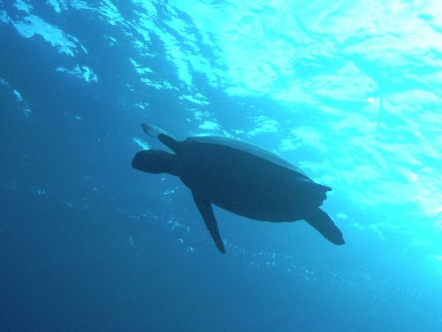 溝の中を通り抜けていた時、ふと上の方を見上げるとアオウミガメがゆた~っと気持ち良さそうに泳いでました。皆さん上手く写真撮れたかな