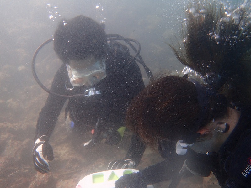 その後ポンで島民の方2名の体験ダイビング!